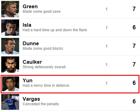 첼시전에 3경기 연속 풀타임 출전한 윤석영(24·퀸즈파크레인저스)에게 영국 현지 언론이 평점 6점을 부여했다.