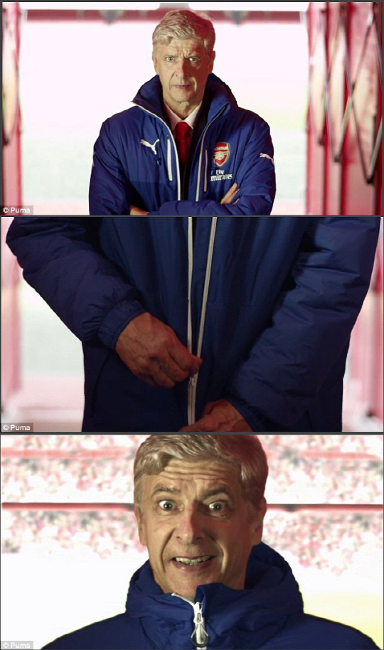 영상에 등장한 벵거 감독도 지퍼를 부드럽게 올리며 "해결된 거 같다"고 만족감을 드러냈다.