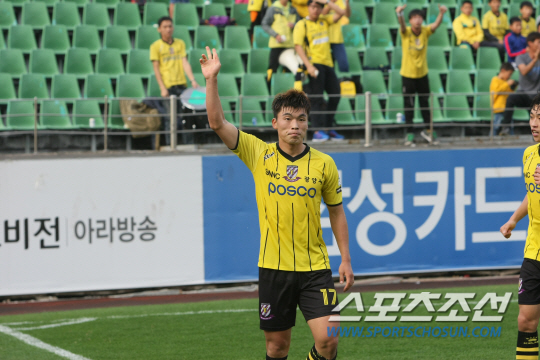 ◇10호골, 천금의 동점골을 터뜨린 이종호가 팬들의 뜨거운 환호에 손을 들어 답하고 있다. 사진제공=전남 드래곤즈 구단