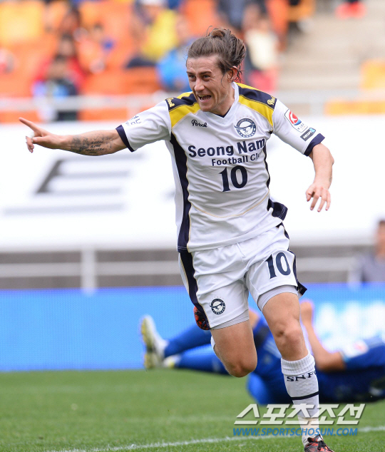 2014 프로축구 K리그 클래식 수원삼성과 성남FC의 경기가 19일 수원월드컵경기장에서 열렸다. 성남 제파로프가 동점골을 성공시키고 환호하고 있다. 수원=최문영 기자 deer@sportschosun.com /2014.10.19/