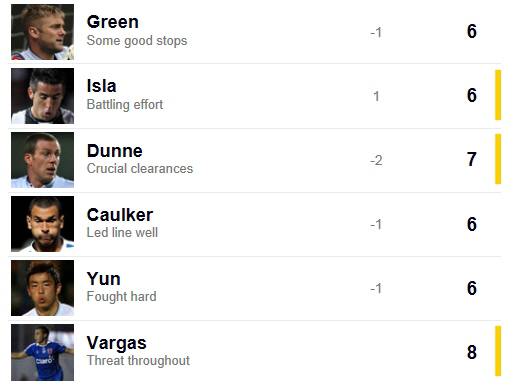 왼쪽 사이드백 윤석영에 대해 영국 스포츠 전문 매체 스카이스포츠는 '열심히 싸웠다(Fought hard)'는 평가와 함께 평점 6점을 부여했다. 첼시전에서 '수비에서 불안한 부분이 있었다(Had a nervy time in defence)'던 평가에서 호평으로 돌아섰다. 3경기 연속골을 터뜨리며 '오스틴 파워'를 뽐낸 찰리 오스틴과 재기발랄한 모습으로 공격의 시작점 역할을 충실히 해낸 바르가스가 평점 8로 QPR에서 가장 좋은 평가를 받았다. QPR은 '강호' 맨시티를 상대로 선전하며 승점 1점을 추가했다. 2승2무7패(승점 8)로 리그 19위를 유지했다. 전영지 기자 sky4us@sportschosun.com
