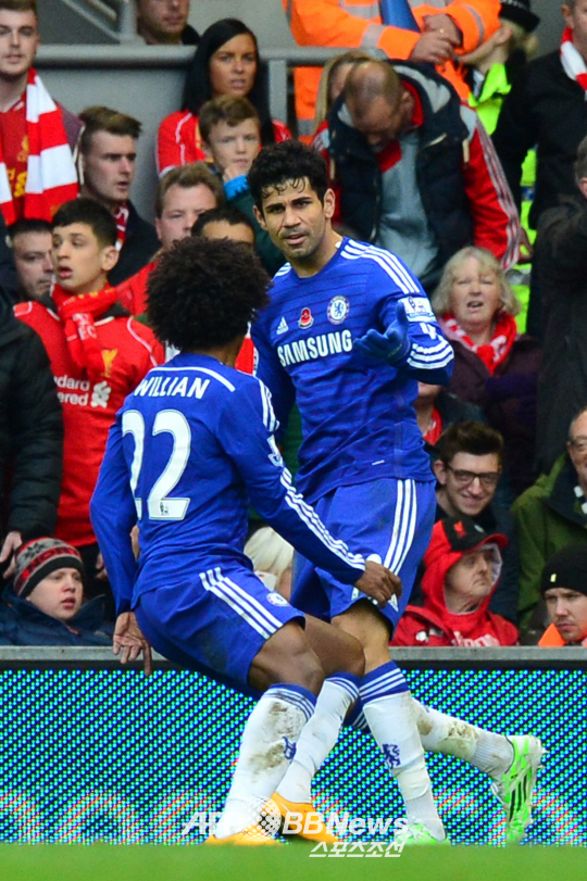 첼시가 또 하나의 벽을 넘었다. 원정에서 리버풀에 역전승했다. 첼시는 8일(이하 한국시각) 리버풀 안필드에서 벌어진 2014~2015시즌 잉글랜드 프리미어리그(EPL) 11라운드 리버풀과의 원정경기에서 2대1로 역전승했다. 전반 9분 엠레 찬에게 선제골을 허용했지만 5분 뒤 개리 케이힐이 승부를 원점으로 돌린데 이어 후반 25분 디에고 코스타가 역전골을 터트렸다. 코스타는 10호골을 기록, 득점 선두에 올랐다.
