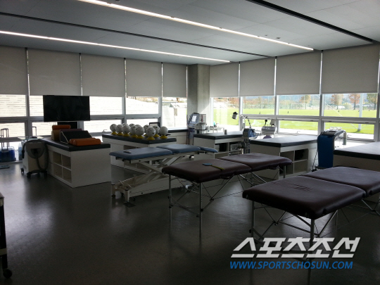 놀랍고 또 놀라웠다. 12일 전북의 우승 미디어데이가 열린 전북 완주군 봉동읍 율소리 클럽하우스를 둘러봤다. 벌어진 입을 다물 수 없었다. 클럽하우스 입구에서 몇 발짝을 떼자 AC밀란(이탈리아)의 홈구장인 스타디오 산시로, 레알 마드리드(스페인)의 요람인 산티아고 베르나베우과 꼭 닮은 U자형 라커룸이 모습을 드러냈다. 놀라움의 서막이었을 뿐이다. 국내 최대, 최고 비용을 자랑하는 수중치료실부터 완벽 방음처리 된 넓은 실내연습구장이 속속 베일을 벗었다. 고주파치료기, 산소텐트 등 최첨단 재활장비들이 즐비한 재활치료실은 '작은 병원'이라고 불러도 좋을 만했다. 직접 눈으로 확인한 전북 클럽하우스는 태극전사의 요람이자 국내 최고를 자부하는 파주NFC(국가대표트레이닝센터)를 가볍게 뛰어 넘는 수준이었다. 이 정도 시설을 갖추고 우승을 못하면 이상하게 느껴질 정도였다. 천천히 클럽하우스를 소개하는 전북 직원들의 얼굴과 눈빛에는 자신감과 뿌듯함이 서려 있었다.