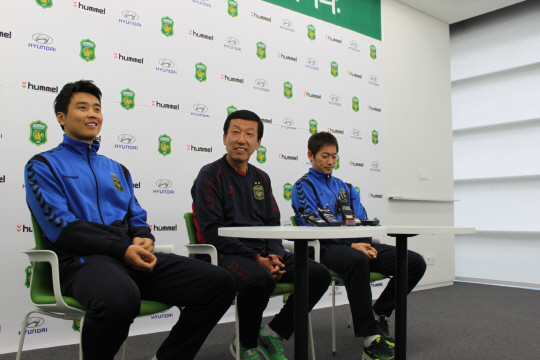 최=순간적으로 이동국이 미운 적도 있었다. 포항전에서 강수일에게 버저비터를 맞고 2대2로 비긴 경기다. 강수일의 득점 직후 이동국이 골대가 텅 비었는데도 슛을 다른 곳에 찼다. 이기는 경기를 비겼다(웃음). 하지만 이동국 때문에 이긴 경기가 더 많았다. 김남일이 경남전에 골을 넣은 날 와이프(김보민 아나운서)가 와서 울고 껴안는 걸 보니 마음이 찡하더라.