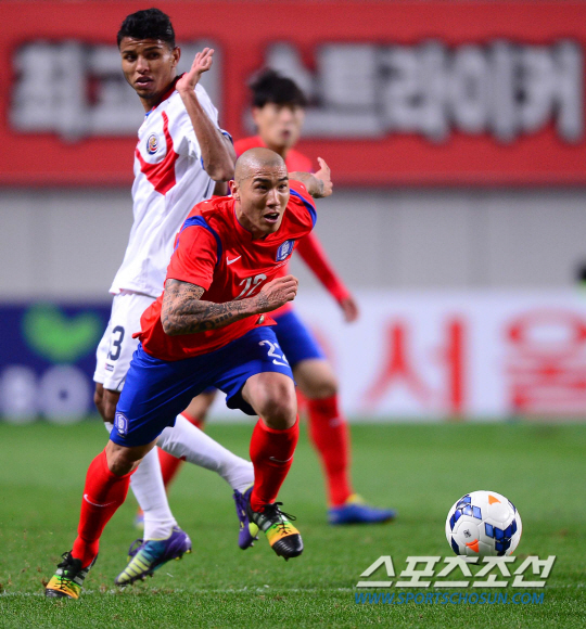 올시즌 10골 3도움으로 맹활약하며 '1강' 전북 우승의 중심에 선 한교원 역시 A매치 첫 원정에서 '폭풍성장'을 입증했다. 파라과이, 코스타리카와의 2연전에 모두 나서며 슈틸리케 감독의 눈도장을 받았던 한교원은 자신감이 넘쳤다. 오른쪽 라인, 차두리와 눈빛 호흡이 일품이었다. 적극적인 쇄도로 상대 수비 뒷공간을 파고드는 한교원을 향해 차두리의 로빙패스가 잇달아 작렬했다. 전반 35분 차두리의 문전 택배 크로스를 이어받아 몸을 날리는 다이빙 헤딩슛으로 골망을 흔들었다. 지난 9월5일 베네수엘라전에서 A매치 데뷔전을 치른 한교원이 4경기만에 터뜨린 A매치 데뷔골이었다. 스피드를 이용한 측면 돌파, 반박자 빠른 슈팅 등 공격수로서 자신이 가진 장기를 펼쳐보였다. 명품 K-리거의 품격을 입증했다.