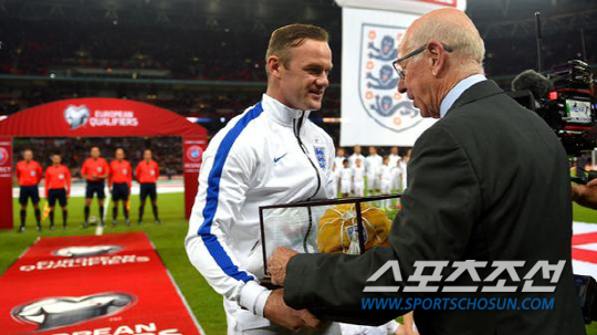 영국이 사랑하는 선수 웨인 루니(맨유)가 드디어 센추리클럽에 가입했다. '영국 축구 레전드' 보비 찰턴 경으로부터 황금모자를 받았다.