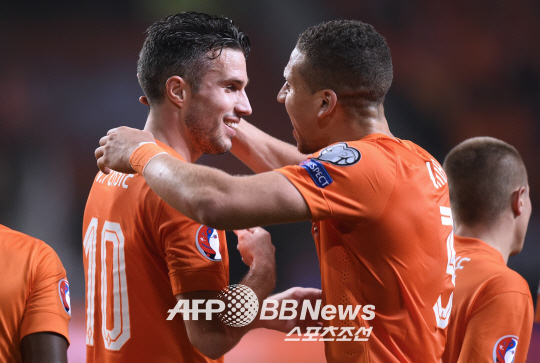 | 로빈 판 페르시가 골을 넣은 뒤 동료와 기뻐하고 있다. ⓒAFPBBNews = News1 |