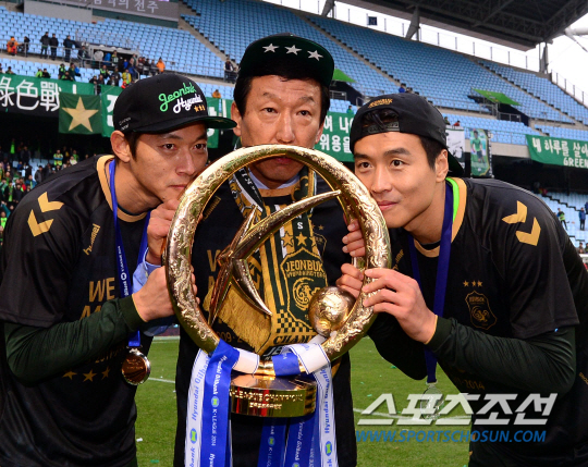 '현상 유지'가 키워드다. 지난 두 시즌 동안 전북은 K-리그의 유일한 '큰 손'이었다. 모기업의 든든한 지원을 바탕으로 2년 연속 이적 시장에 나온 선수들을 적극 영입했다. 치밀한 준비와 투자가 성과를 냈고 이를 통한 재투자가 이어지는 '선순환 구조'가 완성돼 원활한 선수 수급이 이어졌다. K-리그 팀들이 지갑을 닫아 얼어붙은 이적 시장이 오히려 전북에는 기회의 장이었다. 동시에 팀 리빌딩이 시작됐다. 2013년 이승기 김기희 정인환 정 혁을 영입해 팀 리빌딩에 들어선 전북은 2014년 한교원 김남일 이승렬 이상협 신형민 등 굵직한 선수들을 팀에 합류시켰다. 2년 동안 베스트 11의 절반 이상이 새 얼굴로 바뀌었다. 각 포지션별 최상의 구성을 마친 전북은 수 많은 파고에도 흔들리지 않았고 마침내 세 번째 우승컵을 차지했다. 예정보다 빨리 정상궤도에 진입했다. 최 감독은 "팀을 리빌딩하는데 3~5년은 걸린다. 올시즌은 리빌딩의 과정이었다. 사실 내년을 더 기대하고 있다"고 했다.