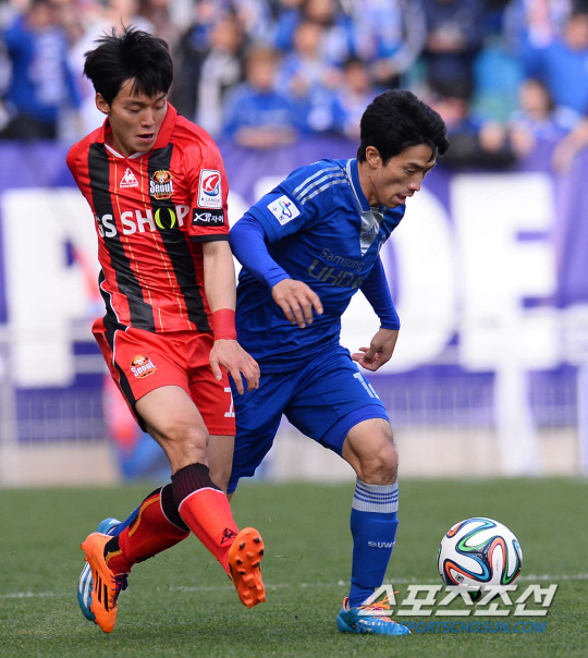 2014 프로축구 K리그 클래식 수원삼성과 FC서울의 경기가 9일 수원월드컵경기장에서 열렸다. 수원의 고차원이 서울의 고광민과 치열한 볼경합을 벌이고 있다. 수원=최문영 기자 deer@sportschosun.com /2014.11.09/