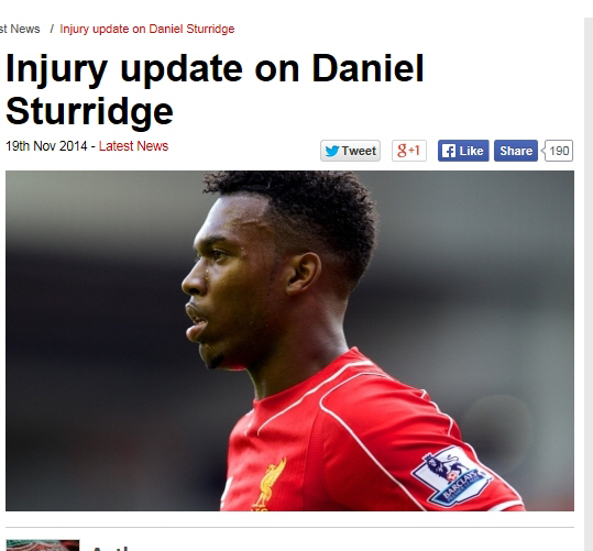 리버풀이 20일(이하 한국시각) 홈페이지를 통해 다니엘 스터리지의 부상 소식을 발표했다. 앞으로 6주간은 경기에 나설 수 없을 것으로 예상된다.