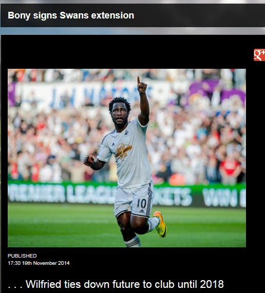 기성용의 동료인 스완지시티의 윌프레드 보니가 재계약했다.