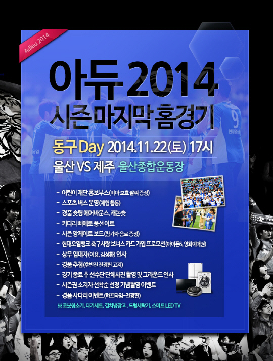 울산은 22일 오후 5시 울산월드컵경기장에서 벌어질 제주 유나이티드와 2014년 현대오일뱅크 K-리그 클래식 스플릿 라운드 홈 경기를 치른다.
