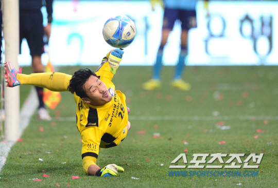 23일 서울 상암동 서울월드컵경기장에서 2014프로축구 FA컵 결승전 FC서울과 성남FC의 경기가 열렸다. 성남FC가 FC서울에 승부차기까지 가는 승부 끝에 승리를 차지했다. 성남FC는 승부차기에서 박준혁 골키퍼의 선방으로 우승을 차지했다. 박준혁 골키퍼가 FC서울 몰리나의 승부차기 볼을 막아내고 있다. 상암=송정헌 기자 songs@sportschosun.com/2014.11.23