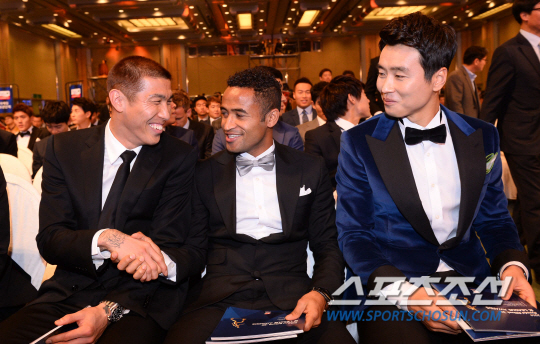차두리-산토스-이동국이 1일 홍은동 그랜드 힐튼호텔에서 열린 2014 K리그 대상 시상식에 참석에 포즈를 취하고 있다. 최문영 기자 deer@sportschosun.com