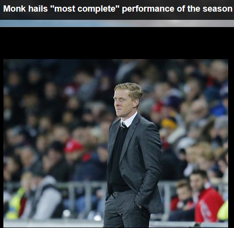 경기를 마친 몽크 감독은 공식 인터뷰에서 "팬들은 아스널전과 맨유전 승리가 가장 뛰어났다고 얘기하지만 내가 보기에는 오늘 QPR전이 올시즌 중 최고의 경기였다"고 밝혔다. 이어 "90분동안 경기를 지배했다. 템포아 패스, 공격력, 수비려 모두 완벽했다"고 했다.
