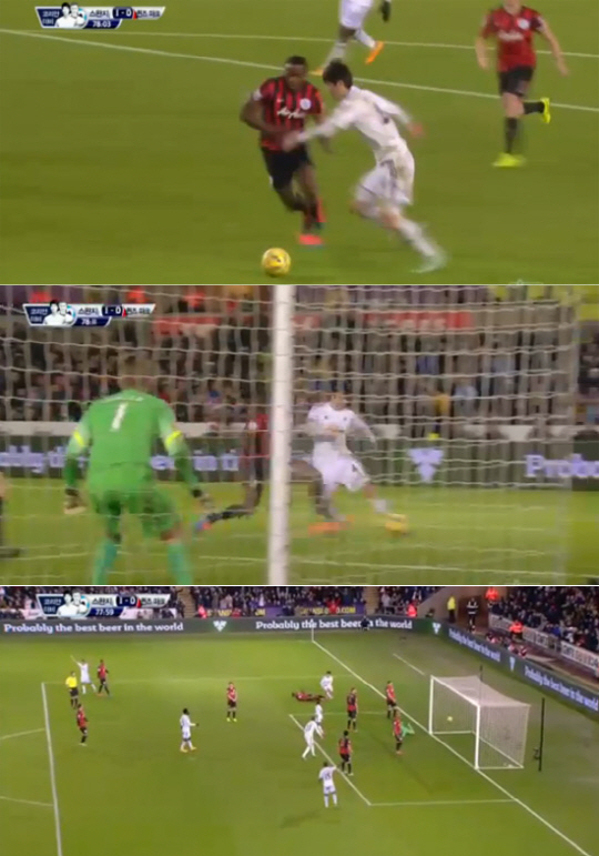 후반 33분 보니의 패스를 받은 기성용은 페널티박스 왼쪽 사각지대에서 수비수 한 명을 제치고 왼발슛을 시도, 공은 오른쪽 골포스트에 맞고 골망을 흔들었다. 지난 8월 맨체스터 유나이티드와 개막전 이후 3개월 만에 터진 시즌 2호 골이다.