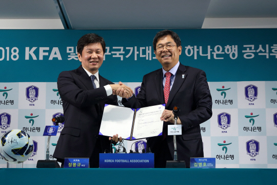 1998년부터 A대표팀 공식 후원사로 활약해온 하나은행은 이날 후원 계약으로 20년간 축구협회와 파트너십을 유지하게 됐다. 협회는 슈틸리케 감독이 하나은행을 명예축구국가대표로 위촉하는 이벤트도 마련했다.