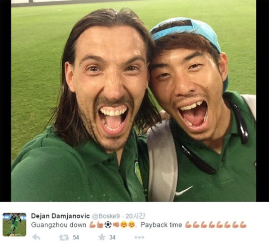 서울에서 한솥밥을 먹은 데얀과의 재회도 뜨거웠다. 데얀은 올시즌 서울에서 장쑤로 말을 갈아탔지만 6월 베이징으로 재차 둥지를 옮겼다. 둘은 여전히 '서울의 피'가 흐른다. 10월 26일 광저우 헝다와의 원정경기에선 1대0으로 승리한 후에는 기념사진까지 찍었다. 서울은 지난해 ACL 결승전에서 광저우의 벽을 넘지 못했다. 데얀은 이 경기 직후 자신의 트위터 계정에 '광저우를 꺾었다. 복수의 시간'이라는 글을 남겼다. 하대성도 "광저우가 우리를 이기면 우승 트로피를 들어올릴 수 있는 경기였다. 축하연도 준비했다. 우리가 이기자 축하연을 위해 준비한 꽃이 철수되더라. 우승 파티에 찬물을 끼얹었다. 제대로 복수를 했다고 생각했다. 후반기 데얀이 와서 굉장히 편안하다"며 웃었다.