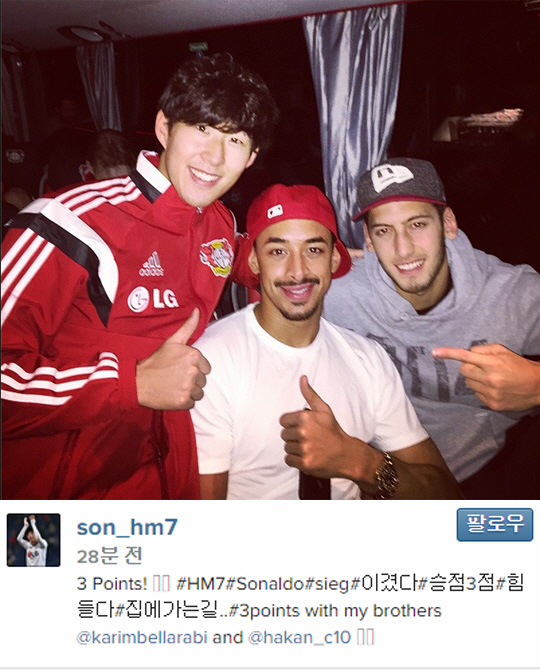손흥민은 이날 승리 후 자신의 인스타그램에 "이겼다. 승점 3점, 힘들다. 내 형제들과"라는 글과 함께 '절친' 카림 벨라라비-하칸 칼하노글루와 함께 한 사진 한 장을 올렸다.