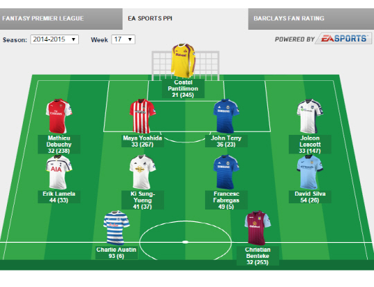 한편, 베스트11에는 기성용, 파브레가스 외에 찰리 오스틴(퀸스파크레인저스), 크리스티안 벤테케(애스턴빌라)가 공격수, 다비드 실바(맨시티), 에릭 라멜라(토트넘), 마티유 드뷔시(아스널), 요시다 마야(사우스햄턴), 존 테리(첼시), 졸레온 레스콧(웨스트브롬), 코스텔 판틸리몬(선덜랜드)이 이름을 올렸다.