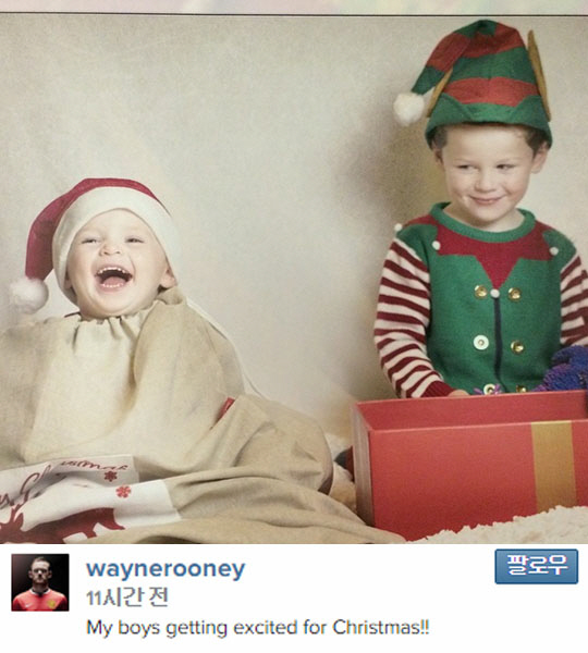루니는 24일(한국 시각) 자신의 SNS에 "우리 아들들이 크리스마스를 맞아 즐거워하고 있다"라는 글과 함께 사진 한 장을 올렸다.