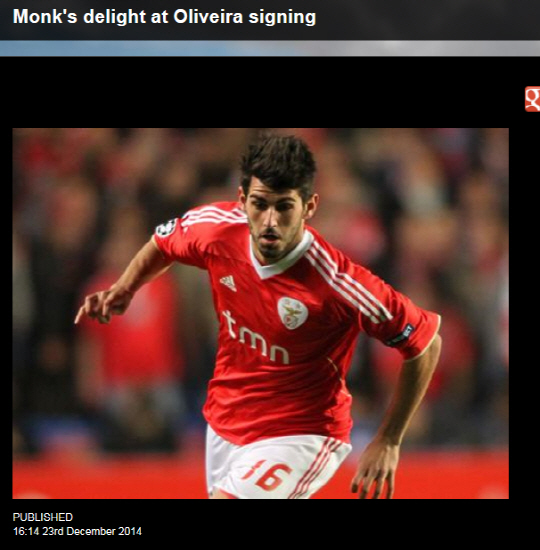 포르투갈 국가대표 출신인 그는 A매치 14경기에 출전했다. 올리베이라는 "스완지시티 임대를 결정한 것 어렵지 않았다. 패스 축구를 기반으로 하는 스완지의 전술에 큰 매력을 느낀다"며 "스완지시티의 공격수 계보를 이어가는 선수가 되고 싶다"고 말했다.