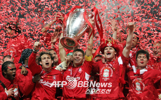 2005년 유럽챔피언스리그 우승당시 우승컵을 들고 기뻐하는 제라드. ⓒAFPBBNews = News1