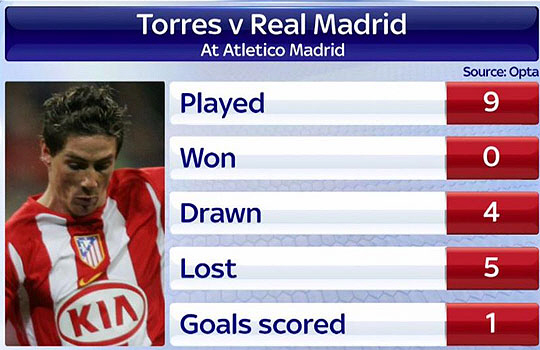 하지만 AT마드리드의 토레스 영입이 레알 마드리드 전에 긍정적인 효과로 작용할지는 미지수다. 토레스는 지난 2001년 입단 이래 2007년 리버풀로 떠나기 전까지 치른 9번의 마드리드 더비에서 4무5패를 기록, 단 1승도 올리지 못했다. 득점도 단 1골에 그쳤다.