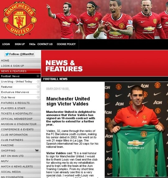 맨유가 결국 빅토르 발데스(33) 영입을 공식 발표했다.