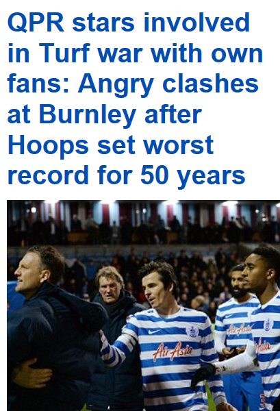 11일(한국시각) QPR이 잉글랜드 프리미어리그(EPL) 21라운드 번리 원정에서 1대2로 패한 직후다. QPR은 올시즌 원정에서 단 한번도 승리하지 못했다. 이날 패배로 원정 10경기 연패를 기록하게 됐다. QPR의 원정 10연패는 참담한 기록이다. 1964~1965시즌 이후 50년만에 최악의 기록과 타이를 이뤘다.