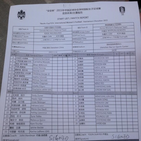 한국과 캐나다의 최근 맞대결 전적은 1승1패였다. 2013년 1월14일 영천 4개국 친선대회 캐나다와의 첫 맞대결에서 3대1로 승리했고, 2013년 10월31일 원정 평가전에선 0대3으로 대패했다. 1년반만의 맞대결에서 아쉽게 역전패했지만, 팽팽한 경기력으로 승부하며 5개월 후 캐나다월드컵에 대한 기대감을 부풀렸다.
