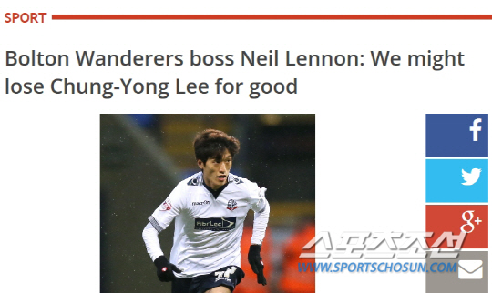 이청용은 이번 겨울이적시장에 팀을 떠날 가능성이 있다. 레넌 감독은 "이청용과 재계약 협상이 멈췄다. 이청용이 잉글랜드 프리미어리그 팀들의 관심을 받고 있는 건 사실이다. 이번 겨울 이적시장에서 이청용이 팀을 떠날 가능성이 있다"고 말했다. 선덜랜드, 헐시티, 크리스탈 팰리스 등이 거론되고 있다. 이청용은 이번 여름 볼턴과 계약이 끝난다. 겨울이적시장에 움직여야 볼턴도 이적료를 받을 수 있다.