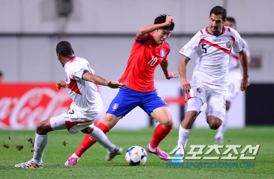 기대가 컸지만 오만전에서 손흥민은 침묵했다. 5백을 내세운 오만의 질식수비에 막혔다. 인상적인 장면은 2~3차례 뿐. 전반 6분, 기성용의 40m 롱패스를 감각적으로 받아낸 뒤 로빙 슈팅으로 연결했다. 크로스바에 막혔다. 전반 44분에는 크리스티아누 호날두(레알 마드리드)를 연상케하는 무회전 프리킥으로 오만을 깜짝 놀라게 했다. 오만의 골키퍼 알 합시가 공의 궤도를 끝까지 추격해 온 몸으로 막아냈다.