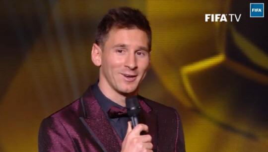 13일 새벽(한국시각) 국제축구연맹(FIFA) 발롱도르 시상식에서 올해의 남자선수 부문 최종후보인 리오넬 메시가 무대에 올랐다.