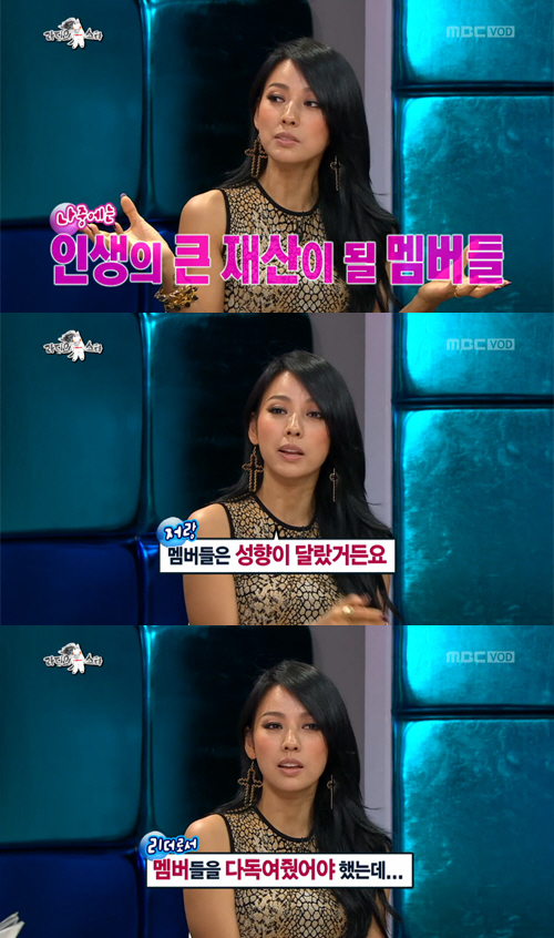 또 "멤버들과 나는 성향이 많이 달랐다. 애들은 교회 다니고 술도 안 마시고 남자도 몰랐는데 나는 혼자 대학생활 하다가 와서 자유롭게 살다가 틀에 박힌 규율에 갇히니까 많이 겉돌았다"고 고백했다. 이어 "그때 리더로서 멤버들을 다독여줬어야 했는데 그러지 못한 점이 많았다"고 덧붙였다.