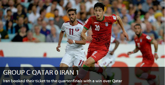 2015년 호주아시안컵의 '우승후보' 이란이 조별리그 2연승으로 8강에 진출했다. 이란은 15일(이하 한국시각) 호주 시드니의 호주 스타디움에서 열린 조별리그 C조 2차전에서 1대0으로 승리를 거뒀다. 이로써 이란은 바레인과의 1차전 승리(2대0)에 이어 2연승을 질주하며 최소 조2위를 확보, 8강행을 확정했다.
