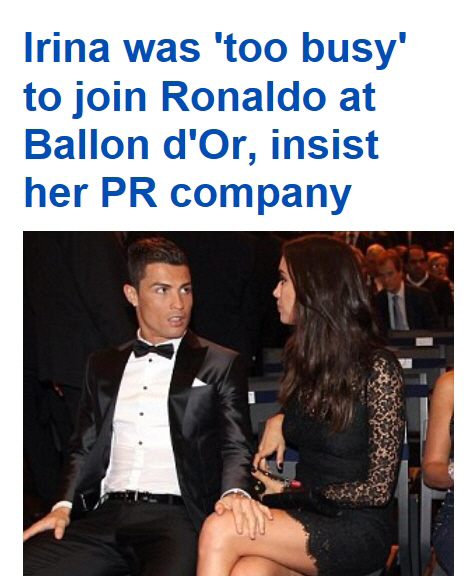 지난해 시상식에서 샤크와 동반해 남다른 금슬을 과시했던 호날두가 '나홀로' 시상식장에 들어서자 팬들이 의혹의 시선을 보냈고, 호날두가 발롱도르 수상 소감에서 샤크를 언급하지 않았고, 이리나 역시 축하 메시지를 따로 공개하지 않는 등 일련의 분위기에 팬들과 언론의 의구심은 증폭됐다. 시상식 직후 이리나가 트위터 계정에서 호날두를 '언팔(팔로우를 끊음)'한 사실이 알려지며 불화설, 결별설이 제기됐다.