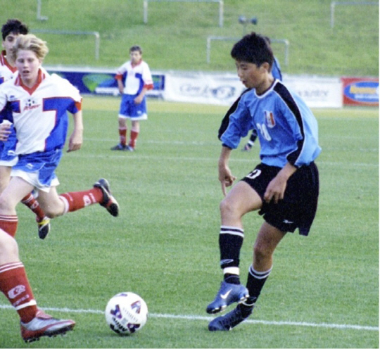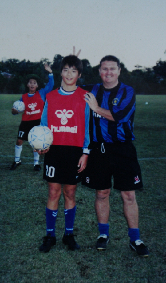 호주 브리즈번의 존 폴 칼리지 유학 시절 주말 리그 경기에 나선 기성용. 사진제공=김의석 TY스포츠 아카데미 이사