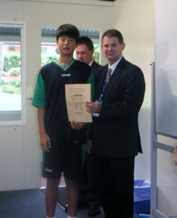 존 폴 칼리지에서 영어 레벨 4 과정을 이수하고 졸업 기념 사진을 찍은 기성용. 사진제공=김의석 TY 스포츠 아카데미 이사