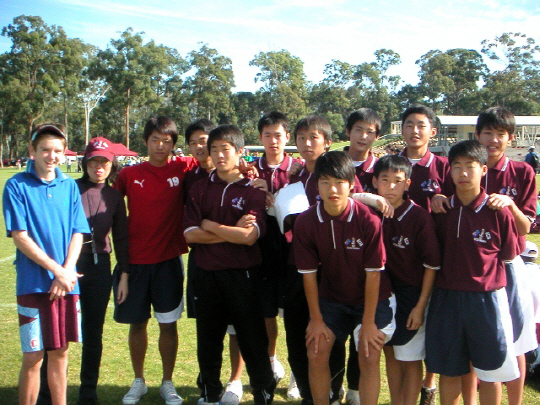 존 폴 칼리지 훈련장에서 한국 유학생들과 포즈를 취한 기성용(앞줄 오른쪽에서 세 번째). 사진제공=김의석 TY 스포츠 아카데미 이사