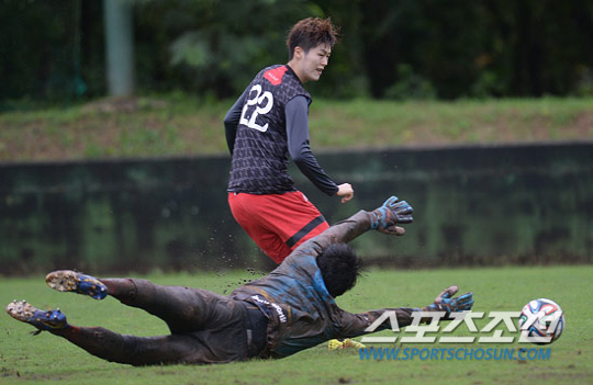 18일 오전 괌 레오팰리스 리조트 훈련장에서 FC서울 선수들이 훈련을 했다. 온 몸이 흙투성이가 된 김용대가 스트레칭을 하고 있다. 지난 3일 괌으로 출발해 레오팰리스 리조트에 캠프를 차린 서울은 2월 17일 올시즌 첫 경기를 치른다. 지난해 정규리그 마지막 경기에서 극적으로 포항을 제치며 3위를 차지한 서울은 0.5장의 아시아챔피언스리그 출전 티켓을 획득, 2월 17일 홈에서 하노이(베트남)-반둥(인도네시아) 승자와 단판 플레이오프를 치른다. 서울이 예년보다 4~5일 빨리 캠프를 차린 이유다. 괌에서 22일까지 20일간 1차 전훈을 마친 FC서울은 25일부터 2월 8일까지 일본 가고시마에서 2차 전훈을 할 예정이다. 괌=정재근 기자 cjg@sportschosun.com/2015.01.18/