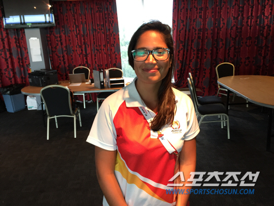 24일 호주 시드니의 코가라 오발에서 진행된 슈틸리케호 공식 훈련장에서 취재진의 안내를 도운 브라질 출신 포포 에리카씨. 시드니(호주)=김진회 기자