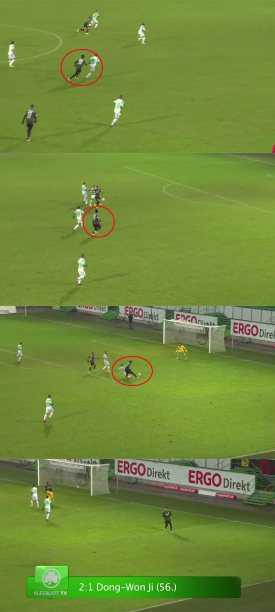 이날 아우크스부르크는 전반 27분 뢰커 베네딕트에게 선제골을 허용했지만, 후반 4분 프란시스코 카이우비의 동점헤딩골에 지동원의 역전골까지 터지며 승부를 뒤집었다.
