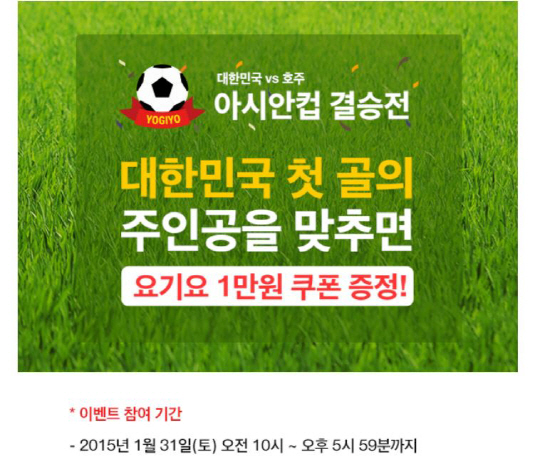 배달앱 업체 요기요는 31일 오전 10시부터 오후 5시59분까지 요기요 앱을 통해 배달음식을 주문한 뒤 한국의 첫골 예상 주인공을 입력하면 1만원권 쿠폰을 제공한다.