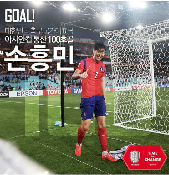 1대2 아쉬운 패배, 55년만의 우승 꿈을 이루지 못했지만, 에이스 손흥민의 극장골은 뜨거운 위안이었다. 31일 호주스타디움에서 펼쳐진 호주아시안컵 개최국 호주와의 결승전, 0-1 패색이 짙던 후반 인저리타임, 손흥민의 발끝이 번쩍 빛났다. '두리삼촌'의 은퇴무대 우승의지는 그 어느때보다 절실했다. 왼쪽에서 공격이 전개된 상황, 타이트한 공간을 영리하게 뚫어낸 기성용의 패스를 이어받은 손흥민의 발끝이 빛났다. 한골차 승리를 지키기 위해 호주 수비진들인 한껏 내려선 상황, 좁은 공간에서 촘촘한 호주 수비라인을 손흥민은 필사적이었다. 페널티박스 왼쪽을 파고든 뒤 침착한 왼발 슛으로 골망을 기어이 흔들었다. 손흥민은 전광판을 껑충 뛰어넘어 대한민국 응원단 쪽으로 달려가 환호했다. 승부를 연장으로 넘긴 극장골이었다. 연장전반 16분 제임스 트로이시에게 통한의 결승골을 내주며 1대2로 패했지만, 손흥민의 극장골은 악전고투했던 이번 아시안컵에서 가장 짜릿한 순간, 늪축구의 답답함을 뻥 뚫어주는 최고의 순간으로 팬들의 가슴속에 남게 됐다. 역사적 의미도 있다. 대한축구협회는 공식 SNS를 통해 이 골이 대한민국 대표팀 아시안컵 통산 100호골이라고 공지했다.
