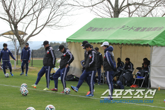 ◇이민성 수석코치, 이성재 코치, 권찬수 골키퍼 코치, 윤정환 감독(왼쪽 세 번째부터)이 2일 일본 미야자키현 사이토시 운동장에서 열린 후쿠오카대학과의 연습경기에 앞서 볼을 굴려 보내 거리를 재는 간단한 게임으로 분위기를 달구고 있다. 태국 치앙마이 전지훈련 뒤 일시 귀국했던 울산 선수단은 지난달 30일 미야자키에 도착, 2차 전지훈련에 돌입했다. 울산 선수단은 9일까지 연습경기 등 실전 감각을 끌어올리는 데 주력하며 새 시즌 담금질을 할 계획이다. 사이토(일본)=박상경 기자 ppark@sportschosun.com
