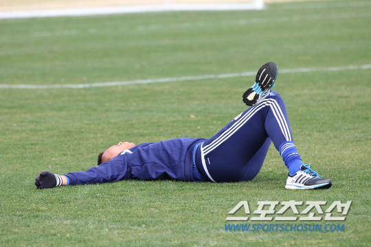 [전훈포토]울산 FW 김신욱 '자는거 아닙니다'