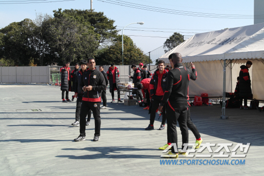 ◇FC서울 선수단이 3일 일본 가고시마현 가고시마시에서 가진 J2 이와타와의 연습경기를 위해 그라운드에 들어서고 있다. FC서울은 지난달 4일부터 22일까지 괌에서 1차 동계 전지훈련을 마쳤고, 25일부터 오는 8일까지 가고시마현 기리시마시에서 2차 동계 전지훈련 일정을 소화하며 아시아챔피언스리그(ACL), K리그 클래식을 대비한다. 가고시마(일본)=박상경 기자 ppark@sportschosun.com