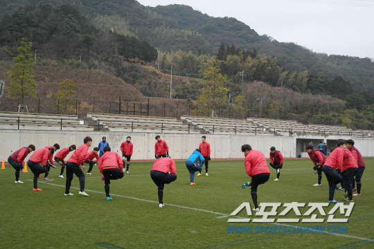 ◇K리그 클래식 대전이 4일 일본 가고시마현 가고시마시의 후레아이스포츠랜드 연습구장에서 훈련에 앞서 몸을 풀고 있다. 제주도에서 1차 동계 전지훈련 일정을 소화한 대전 선수단은 30일부터 20일 간 가고시마 2차 동계 전지훈련을 실시하면서 J리그 우라와 등과 연습경기를 통해 실전 감각을 끌어 올린다는 계획이다. 가고시마(일본)=박상경 기자 ppark@sportschosun.com