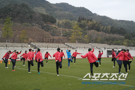 ◇ K리그 클래식 대전이 4일 일본 가고시마현 가고시마시의 후레아이스포츠랜드 연습구장에서 훈련에 앞서 몸을 풀고 있다. 제주도에서 1차 동계 전지훈련 일정을 소화한 대전 선수단은 30일부터 20일 간 가고시마 2차 동계 전지훈련을 실시하면서 J리그 우라와 등과 연습경기를 통해 실전 감각을 끌어 올린다는 계획이다. 가고시마(일본)=박상경 기자 ppark@sportschosun.com